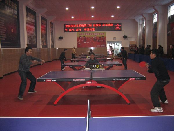 为丰富职工业余文化生活,12月30日,宣城市盐业公司举办全市盐业系统庆元旦、迎新年第二届“盐政杯”乒乓球赛。来自全市6县(市)公司及市公司共计18人参加了本次比赛。参赛选手充分发挥了“友谊第一,比赛第二”的体育道德风尚,展现了宣城盐业系统职工奋力拼搏的精神,经过激烈角逐,曹务轩、周绮武、胡永中、沈红兵、章铁、杨敏同志取得比赛前六名。