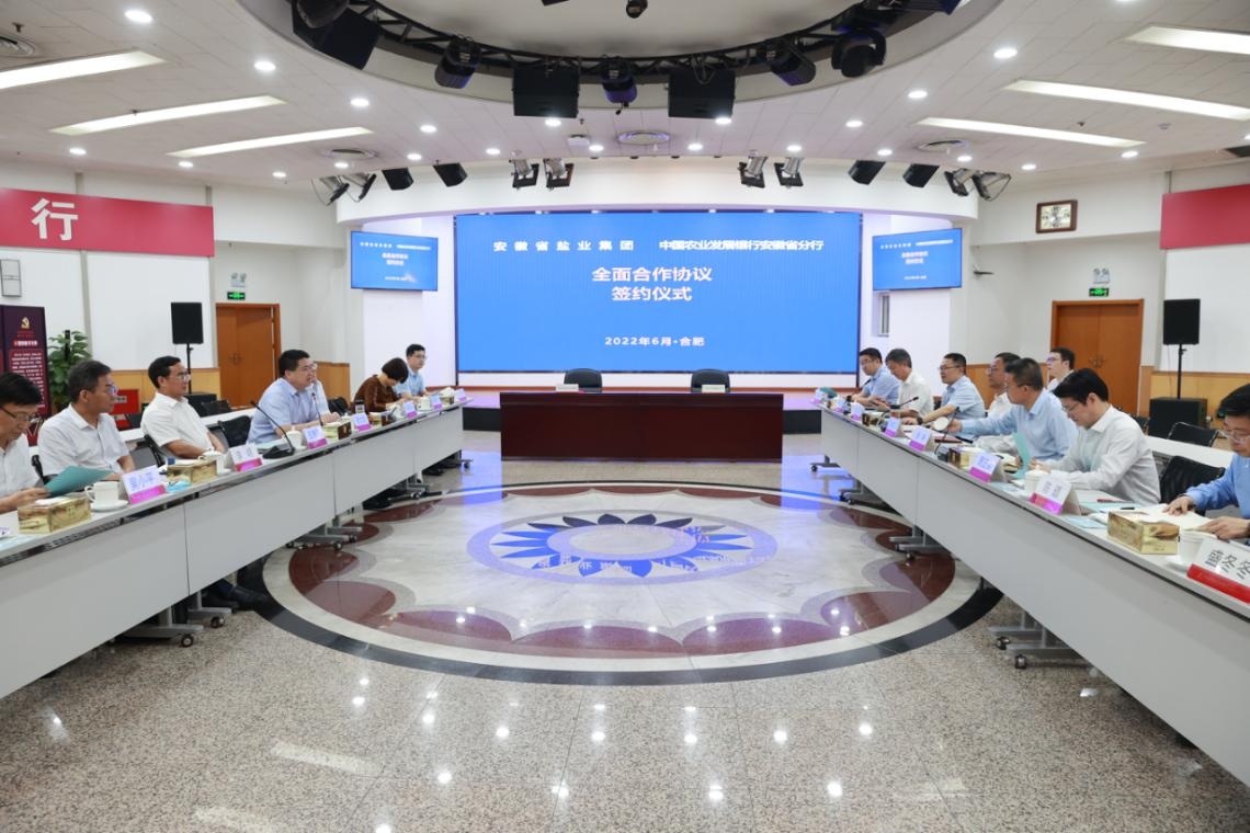 6月1日下午,省盐业集团公司与中国农业发展银行安徽省分行签订战略合作协议。省盐业集团公司党委书记、董事长罗太忠,党委副书记、总经理、董事王思军,农发行安徽省分行党委书记、行长张宝江出席签约仪式。省盐业集团公司党委委员、副总经理余保山,农发行安徽省分行党委委员、副行长金雷代表双方签署合作协议。