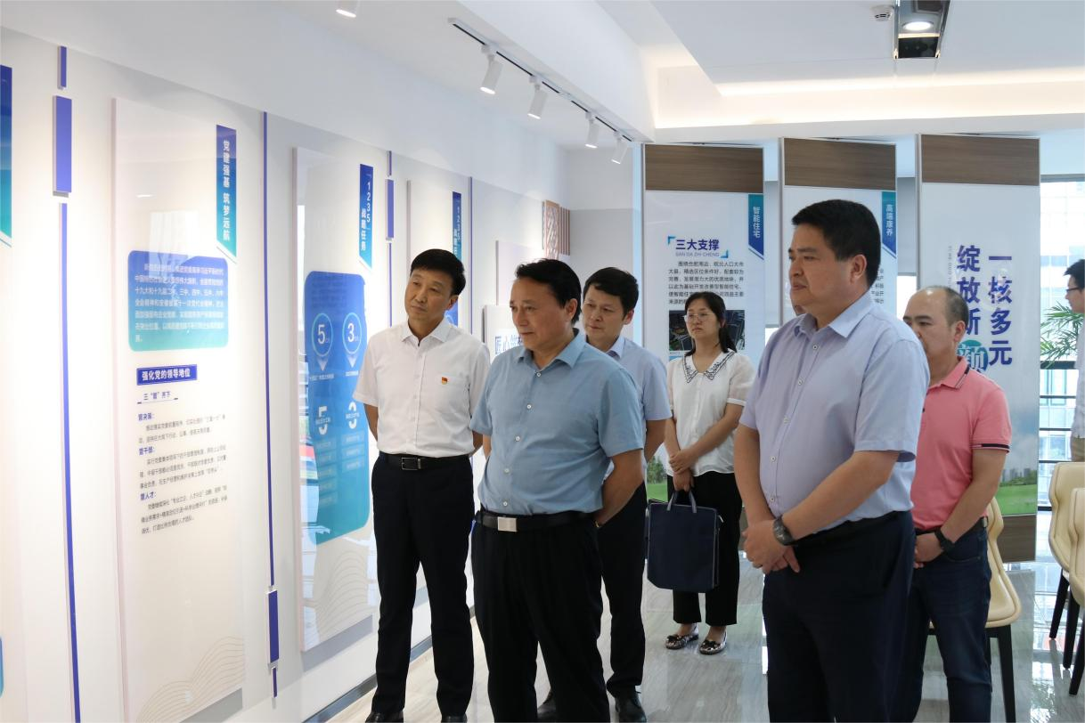 罗太忠热情接待了朱宜存一行,陪同参观了集团所属徽盐地产集团党建品牌展厅与企业文化长廊。调研组一行详细了解了集团公司近年来改革转型发展历程、“十四五”战略发展规划和未来产业布局等方面情况。