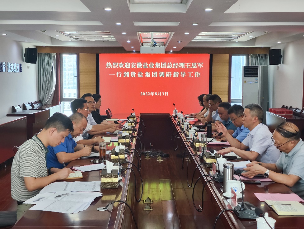 8月3日,王思军一行拜访了贵盐集团,并与贵盐集团党委书记、董事长任建生,党委副书记、副董事长、总经理梅桂等座谈交流。期间,王思军介绍了省盐业集团的经营与改革发展等情况,并重点介绍了发展生态环保以及健康养老等新兴产业的做法,表达了在环保治污、健康养老、乡村振兴以及现代农业等领域进一步加强合作的意愿。王奇介绍了盐改以来在稳市场、调结构、促转型等方面的经验和做法。任建生对省盐业集团近年来在推动改革转型方面的尝试表示了敬佩,认为有很多值得学习的地方,并表示希望双方进一步加强了解,互通有无,加快推动合作落地。