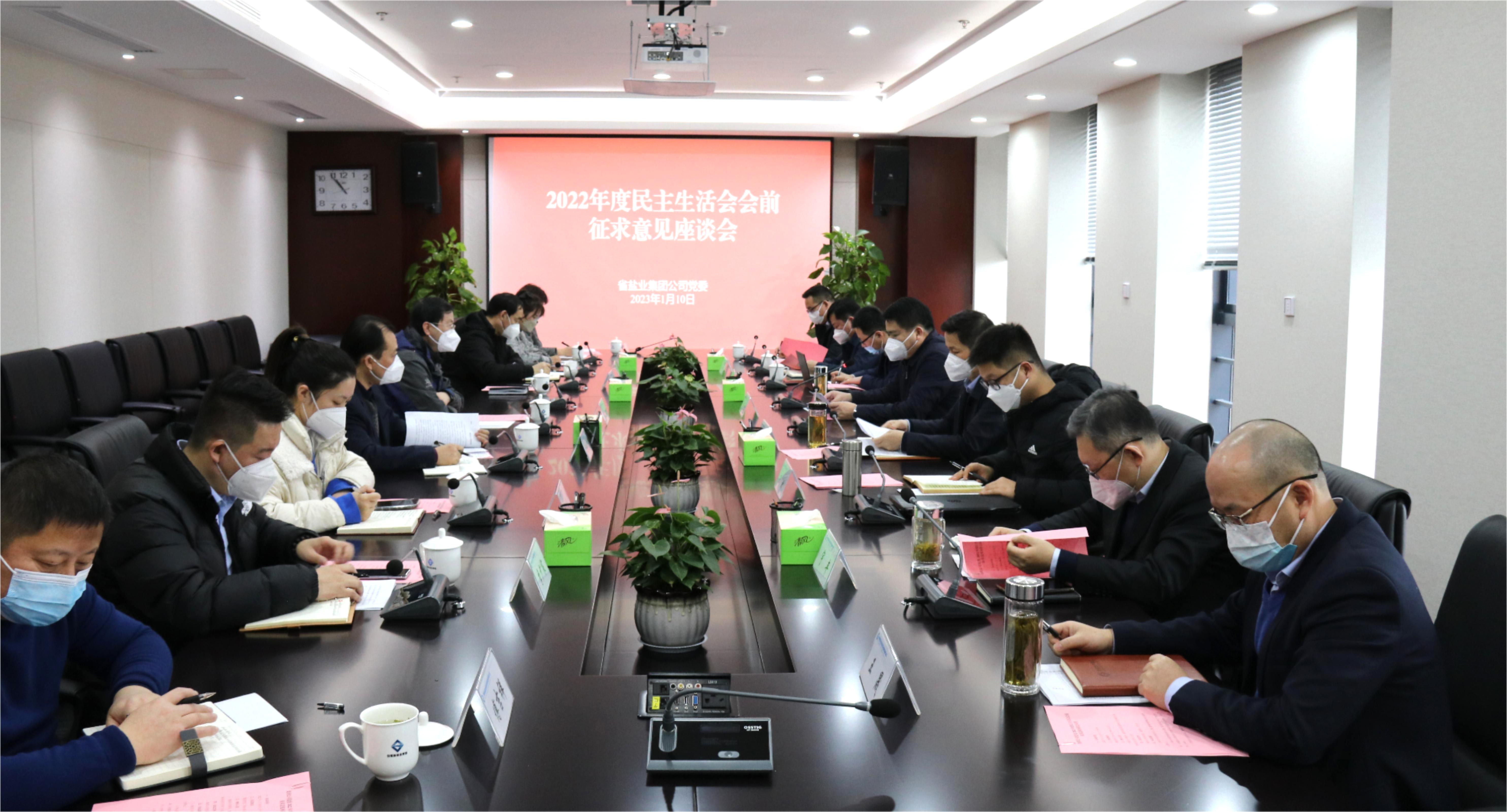 1月10日上午,集团公司党委召开2022年度领导班子民主生活会会前征求意见座谈会,集团公司党委书记、董事长罗太忠主持会议并讲话,15名来自各单位各部门的职工代表、党员干部代表以及民主党派和无党派职工代表参加会议。