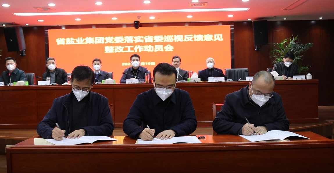 会议集中学习了习近平总书记关于巡视工作的重要论述,传达了郑栅洁书记在省委书记专题会上关于巡视整改工作的部署要求,学习了省委办公厅《关于进一步加强和改进巡视整改工作意见的通知》和《关于加强省委巡视整改和成果运用的若干措施》,解读了《省盐业集团党委关于健全工作机制推进省委巡视整改落实的通知》和省盐业集团党委落实巡视反馈意见整改、纪委落实巡视反馈意见整改、干部选拔任用专项检查意见整改、意识形态工作专项检查意见整改、巡察工作专项检查意见整改的实施方案,各二级单位、本部各部门签订了“一对一”《整改任务书》,顺朝公司、集团公司运营管理部作了巡视整改表态发言。