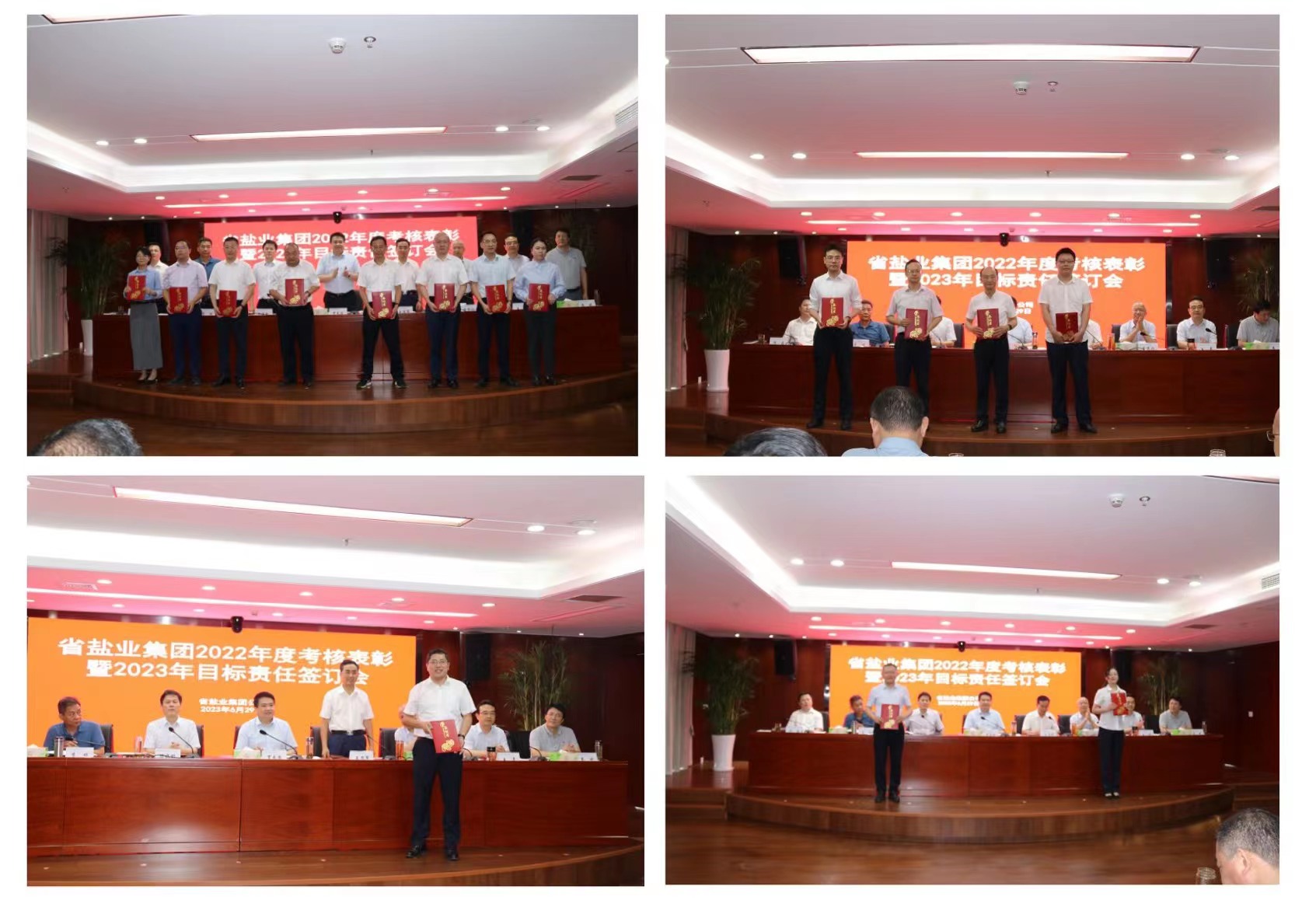 会议通报了2022年集团各单位各部门考核情况,表彰了年度先进集体和个人,解读了新修订完善的所属企业负责人经营业绩考核政策和集团本部综合考核办法。集团领导与相关直属控股公司签订了2023年经营目标责任书、清欠去化目标责任书、安全环保责任书、合规经营承诺书,与本部职能部门签订了综合考核责任书。
