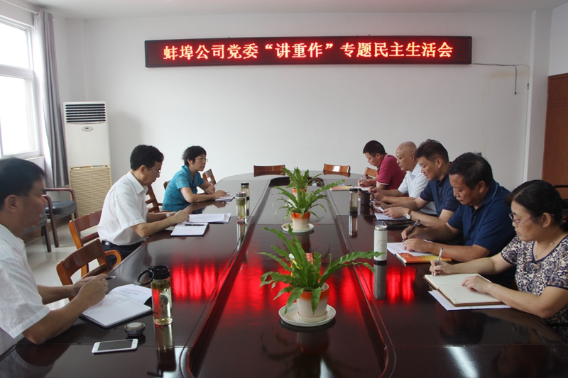 9月13日上午,蚌埠市公司党委召开“讲重作”警示教育专题民主生活会。省公司党委副书记王思军率相关处室负责人到会指导。蚌埠市公司党委书记邱军主持会议,党委班子成员参加会议。