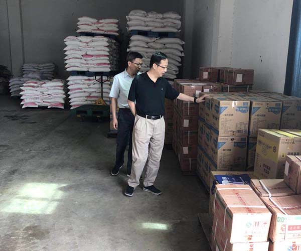 调研期间,石俊一行来到怀远公司仓库实地查看盐与非盐商品的库存情况。怀远公司经理许广宏对今年以来企业经营发展和市场监管等情况以及下一步工作打算进行了汇报。