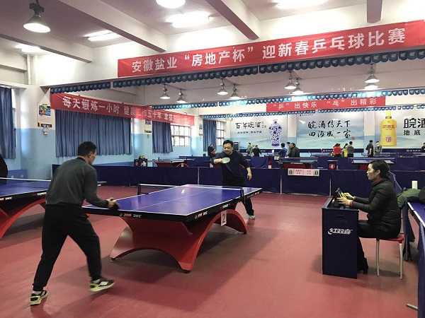 为加强徽盐企业文化建设,丰富职工业余生活,由集团公司工会主办、盐业房地产公司工会协办的安徽盐业“房地产杯”迎新春乒乓球比赛于1月18日在省体委乒乓球馆举行,来自在肥单位三十余名乒乓球运动爱好者参加了比赛。