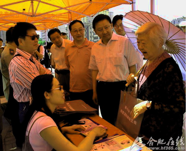 上图为合肥市民正在向执法人员咨询如何安全用盐的常识问题
