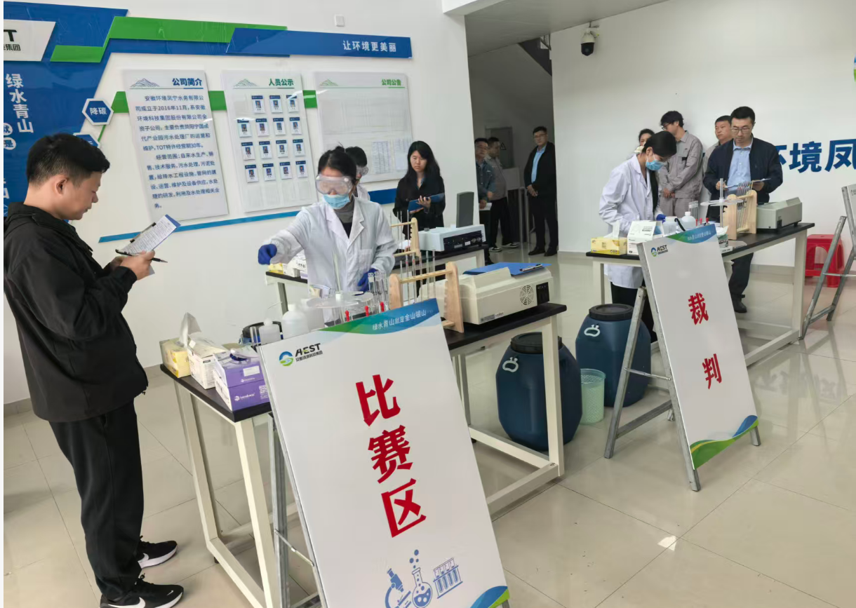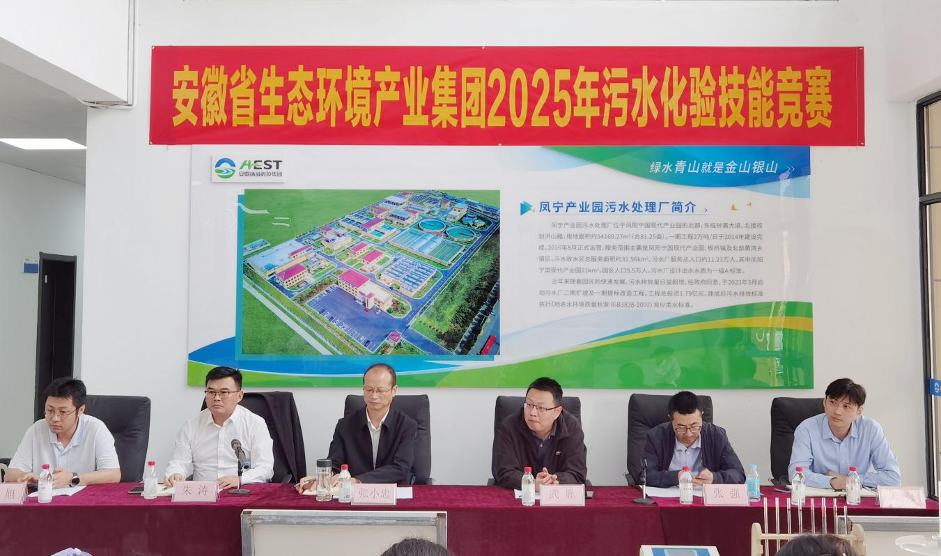 2025年10月17日,由安徽省生态环境产业集团有限公司主办、安徽环境科技集团承办的“2025年污水化验技能竞赛”在凤阳宁国现代产业园污水处理厂成功举办。本次竞赛以“水质氨氮测定(纳氏试剂分光光度法)”为核心内容,通过模拟实操全面检验化验人员的专业技能、规范意识和数据处理能力,是集团公司加强产业工人队伍建设、提升一线人才素质的重要实践。集团公司党委副书记、职工董事、工会主席张小忠出席活动并致辞。