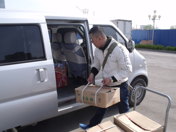 上图为:蚌埠市盐业公司治淮客户经理胡军配送商品