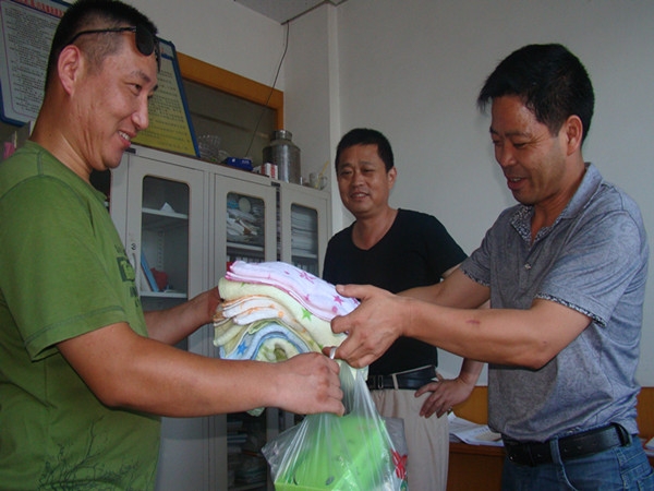 明光市公司吴军林经理给员工发放防暑降温物品。