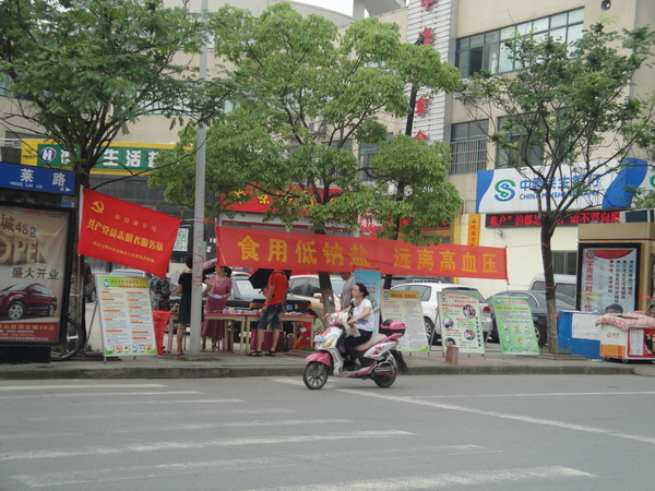 活动地点设在几个集中的小区之间的超市门前,公司党员志愿服务队打出队旗,佩戴徽章,亮明党员志愿者身份。活动展台摆放科学用盐宣传资料、系列低钠盐及盐洁牙膏、沐浴盐、足浴盐等各种生活用盐,吸引了很多市民驻足观看。多年来盐业和疾控部门的努力使食用碘盐防治碘缺乏危害的观念已经深入人心,可喜的是,现在有了更多市民对“食用低钠盐远离高血压”的概念有了初步的了解,还有部分市民对盐在生活中的应用也非常有兴趣。