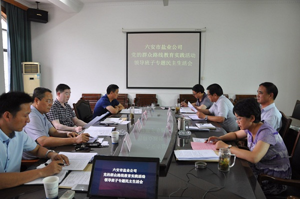 7月14日,六安市盐业公司召开领导班子专题民主生活会,市公司领导班子全体成员、市教育实践活动第九督导组全体领导参加会议。