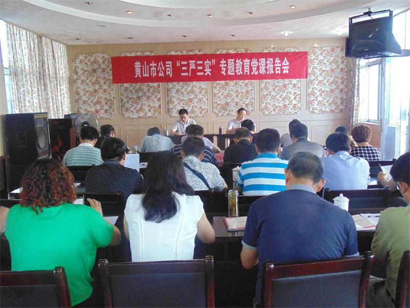 6月24日上午,黄山市公司党委召开“三严三实”专题教育党课报告会,区县公司领导班子成员,市公司全部中层管理人员及全体党员参加会议。