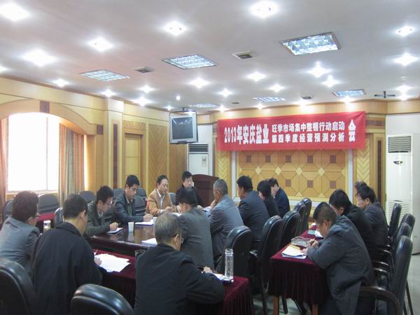 颜宗华一行一到安庆市公司,立即参加了正在召开的全市经营预测分析专题会暨食盐旺季市场集中整治联合执法行动启动会。市公司领导班子和相关部门负责人以及八县(市)公司法人代表参加了会议。