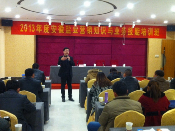 2013年11月28日,2013年度安徽盐业第二期营销知识与业务技能培训班在合肥翰林奥体宾馆举行,省公司经营业务处林爱明处长在培训班开班仪式上向学员作了学习动员并提出了学习要求。培训期间,菱花集团、富氏集团、丹玉醋业、美妮公司、中糖安盐公司营销专家向来自全省的57名一线客户经理传授了商品营销知识与实战技能,本次培训还特别邀请到了国家注册策划师张西赞先生到场做了市场营销学精彩演讲。