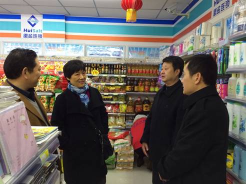 在合肥市“徽盐连锁上城国际店”,省商务厅市场体系建设处鲁伟副处长亲临现场指导。她表示:从9月下旬开始筹备,短短两个多月的时间内安徽盐业能高起点建成31家“徽盐连锁”便利店,体现了安徽盐业的工作效率。从店面设计、产品陈列、营销策略来看,安徽盐业都比较专业。希望安徽盐业进一步加快连锁经营人才引进战略,将“徽盐连锁”打造成在全省有影响力的便利店品牌。