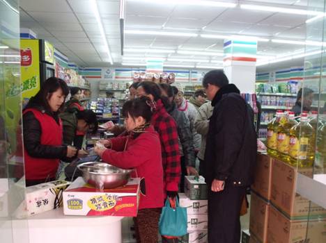 上图为蚌埠市“徽盐连锁”直营便利店开业当天收银台现场