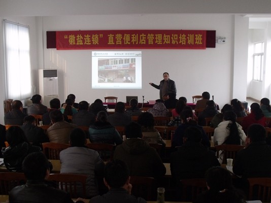 2013年12月5日、6日,“徽盐连锁”直营店管理知识培训班分别在蚌埠、合肥两地顺利举行。本次培训班由省公司网络建设处牵头组织,徽商职业学院汪茂元等3名教授、应用软件公司张为刚总监等受邀现场授课。合肥、六安、蚌埠、池州、太和等5家“徽盐连锁”试点单位共86人参加了培训。