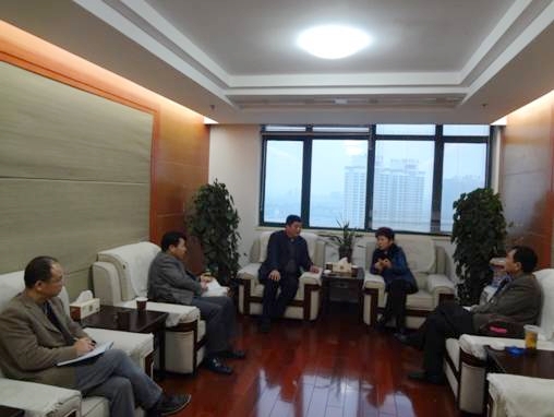 上图为省公司副总经理王良在省公司接待室会见曹世如等一行
