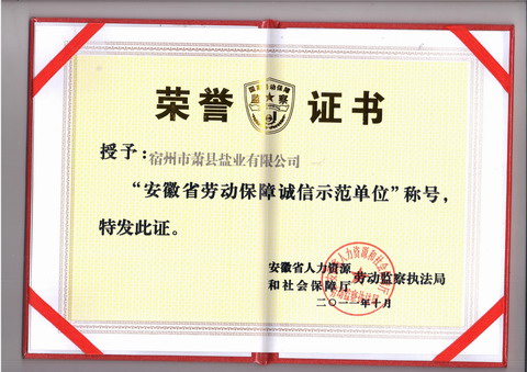 萧县公司荣获“安徽省劳动保障诚信示范单位”称号