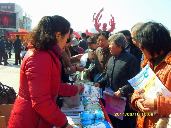3月15日,宿州公司在宿州市科技广场开展了以“低盐饮食、促进健康”为主题的多品种盐宣传活动。 此次宣传以展台、展板、彩页、条幅、实物相结合的综合方式,向广大市民宣传“减盐低钠,促进健康”、“少吃盐、吃好盐 、首选低钠盐”的健康饮食新理念。活动当日,共发放宣传彩页1000多份,销售各种多品种盐共计11件。宿州市人大副主任张旭和宿州市政协副主席王胜华亲自到宣传台看望公司参加宣传人员,对此次活动给予高度评价,希望公司在今后多推出有利于人民身体健康的营养盐,满足市民食盐需求。 此次活动提高了市民对多品种盐的认知度,达到了预期目的,取得了良好效果。