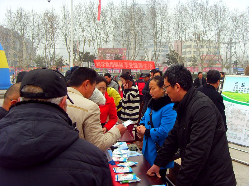 3月15日,宿州公司组织本部相关部门,在市科技广场、经济开发区同时开展了以“低盐饮食、促进健康”为主题的多品种盐宣传活动。 此次宣传以设立咨询台、宣传展板、发放彩页、悬挂条幅、展示实物相结合的综合方式,向广大市民宣传“减盐低钠 促进健康”、“少吃盐 吃好盐 首选低钠盐”的健康饮食新概念。当日发放宣传彩页近千份,销售多品种盐7件。 市政府有关领导亲临公司活动现场,看望慰问相关人员,对宿州公司的此次活动给予高度评价,并希望盐业公司在今后能推出更多有利于人民身体健康的营养盐,让市民的食盐消费有更多选择。此次活动,不仅受到了市政府领导的肯定,同时也受到了广大市民的一致好评,进一步提高了市民对多品种盐的认知度,达到了预期目的。