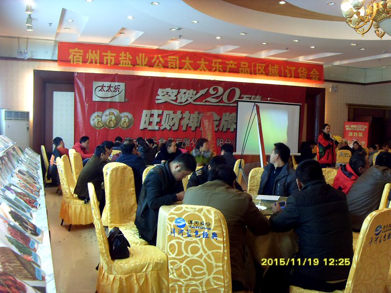11月19日,宿州市公司联合上海太太乐食品有限公司,在宿州市华夏大酒店隆重召开“太太乐”鸡精系列产品订货会。 会上,宿州市公司副经理陈勇发表了热情洋溢的致辞,对上海太太乐食品有限公司和前来参加订货会的各位嘉宾表达了由衷的谢意,并全面介绍了宿州市公司的经营情况。太太乐东区营销公司总经理王为农在致辞中表示,太太乐公司和宿州盐业的强强联合,对下一步提升太太乐产品销量,实现互利双赢充满信心。经销商们一致表示,宿州市盐业公司作为太太乐公司系列产品的宿州总代理,必将进一步提升产品销量,方便客户,保障订货资金安全,是一件惠及多方的大好事。 订货会上,经销商们踊跃订货,现场收到订金20多万元,签订了近30万元的订货协议,订货会取得了圆满成功。