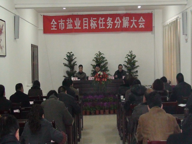 2月28日,宿州公司召开全市盐业目标任务分解大会,再次传达全省盐业工作会议精神,对照2011年经营目标责任书,细化分解全年目标任务。 会上,宿州公司经理张鹰全面传达了全省盐业工作会议精神,带领大家认真学习了詹总所做的工作报告、省公司“十二五”规划等重要文件,并结合宿州盐业实际对下一步工作做了安排与部署。通过学习,大家一致认为詹总的工作报告实事求是地总结了2010年度的工作,对2011年和“十二五”期间全省盐业工作安排定位准确、思路清晰、目标明确,振奋人心。会议根据省公司下达的2011年经营目标任务,对各县公司进行了细化分解,签订了2011年经营目标责任书。 张鹰经理最后要求大家一定要进一步统一思想,认清形势,鼓足干劲,找出差距,紧紧围绕总体目标,保证领导到位,思想到位,责任到位,措施到位,落实到位,支持到位,服务到位,奖惩到位,确保全年各项目标任务的完成。 会上,分管运销、盐政的副经理和相关科室负责人对1-2月份各项经营指标完成情况进行了通报与分析,并对下一步工作作了安排与部署。